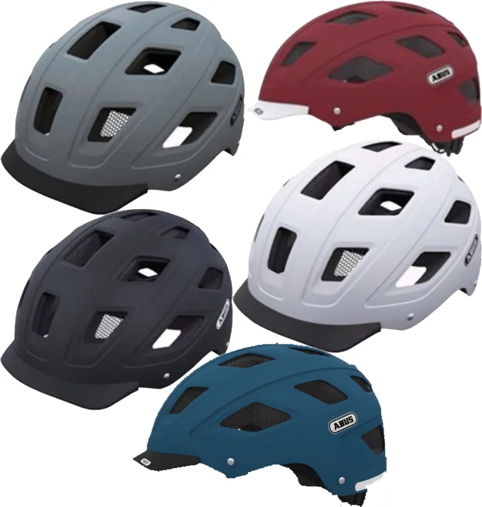 Abus Hyban Helmet Large Polar Matte White The Abus Hyban Helmet is designed for urban cyclists who invest in their safety while getting the most out of their helmet. The ABS Shell can stand up to the complex urban environment. The Precision Evo Micro Adjustable Headring is easy to use and gets you a perfect fit every time. There are 18 huge air vents to keep you cool. There are multiple reflectors and a high mounted rear LED to increase your night time visibility. There is a removable peak so you can customize your helmet. Sizing: Medium 52-58cm, Large 58-62cm. Available in Concrete Grey, Marsala Red, Polar Matte White, and Velvet Black. A5834349