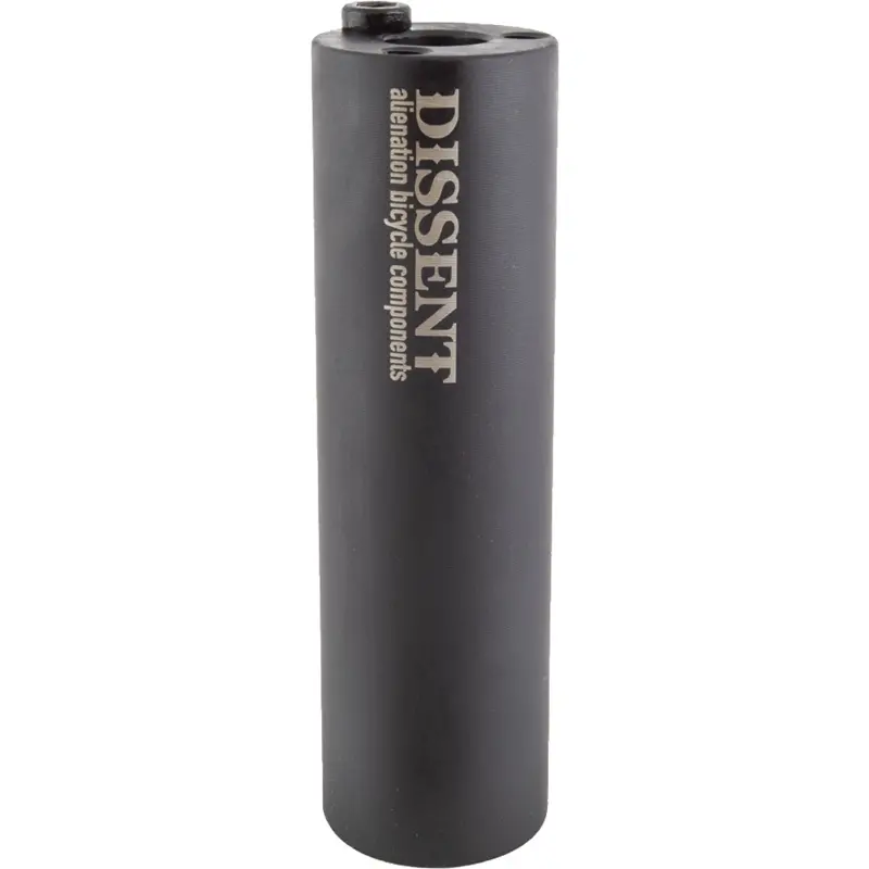 Alienation Dissent Peg 4.5’’ Anodized BlackThe Alienation Dissent Peg is 4.5’’ in length and uses strong post heated treated 4140 chromoly steel pegs with 3 anti-roll pin positions. The outside is coated with Manganese Phosphate to reduce friction while grinding. Compatible with 14mm axle size with included adapters to fit 3/8" axles. The diameter is 1.25’’ to save weight. These pegs are sold individually and available in Black.888571097830