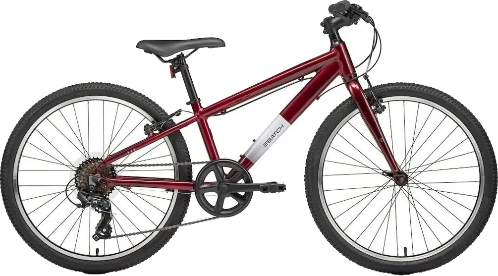 Batch Lifestyle 24’’ Gloss Deep OrchidThe Batch Lifestyle 24’’ is an affordable, approachable, and reliable option for young riders. Simple and easy to use for cruising around the neighborhood or down the block to school, it makes every day a perfect chance to explore, get comfortable on two wheels, or just get out and ride. The 6061 Alloy Frame is paired with a 1-1/8" rigid hi-tensile steel fork and double wall alloy rims. The Shimano 1x7 drivetrain is a great way to learn about smooth shifting. This bike has linear pull rim brakes and rack and fender mounts.811950036489