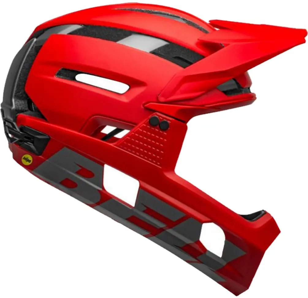 Bell Super Air R Spherical MIPS Helmet Large Matte/Gloss Red/GrayThe Bell Super Air R Spherical MIPS Helmet is the newest most advanced MIPS and Spherical Flex Technologies creation to date. There are 18 helmet vents and 4 brow ports to help keep you cool. The Float Fit Retention System lets you get the perfect fit with the turn of a dial. The Goggleguide Adjustable Visor is perfect to house your goggles or glasses while riding. The X-Static Padding is super plush and high quality. Sizing: Small 52-56cm, Medium 55-59cm, Large 58-62cm.768686284335