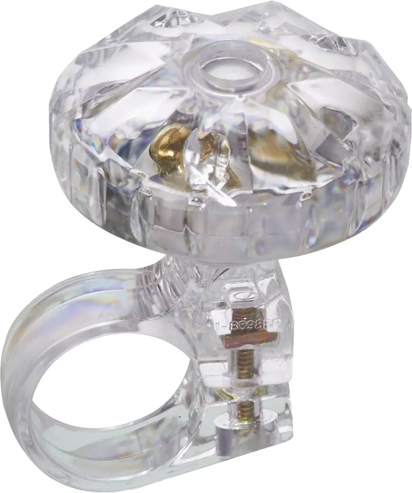 BikeHard BingR Princess Twister Bell SilverThe BikeHard BingR Princess bell looks like the most expensive bell that can be purchased: it looks like it is carved out of a diamond! Absolutely beautiful with a unique top and strong clear sound, the excellent workmanship on this bell will gleam brightly on any handlebar. Equally simple to operate by both children and adults alike, this bell emits a strong clear ping by twisting the translucent top. Once twisted, an internal ball (on a spring) will hit into the sidewall and resonate.