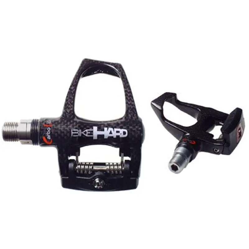BikeHard CarboLite Carbon/Mag Pro Clipless PedalsBikeHard CarboLite Carbon/Mag Road pedal. Carbon Fiber over a Magnesium skeletal body. Technology that provides lightness and strength for competitive cycling. Standard 3 point Look compatible cleat design. Micro Adjustable Tension Release for all body weights and performance levels. CNC Chromoly (Chrome Plated) Spindle, Sealed Bearing Mechanism.850228007769
