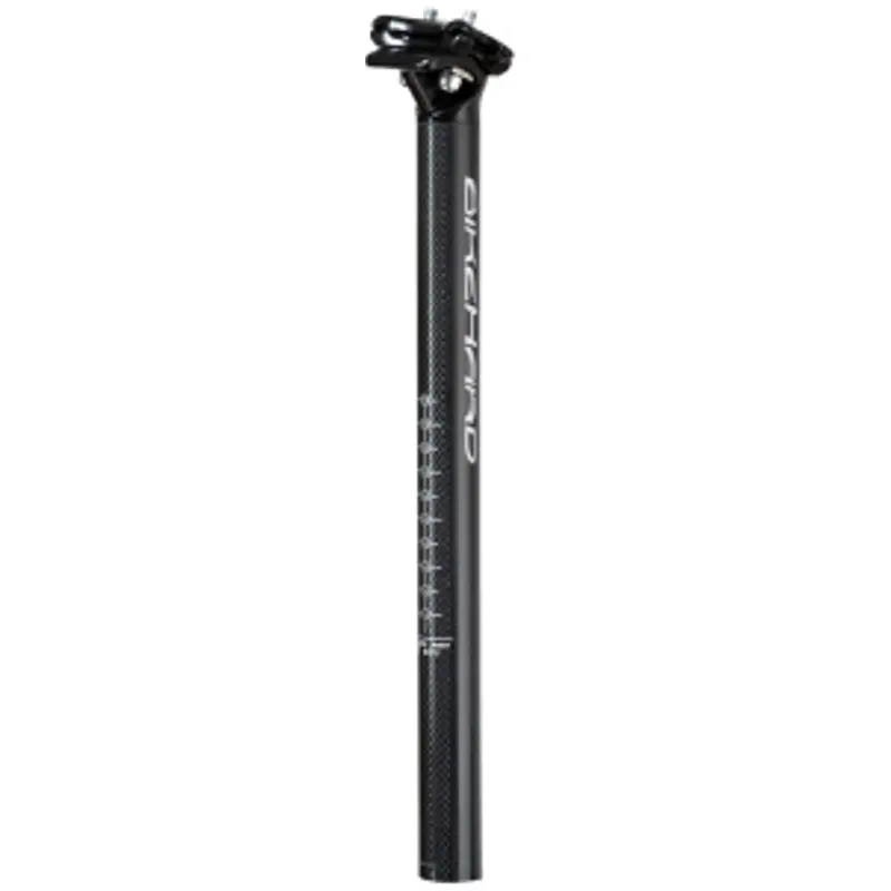 BikeHard CarboLite Carbon Seatpost 27.2 x 350mmThe BikeHard CarboLite carbon seatpost mates a full 3k carbon fiber shaft to an unrestricted tilt adjust 3D forged alloy head. Any saddle can therefore be secured in place, at any desired angle, with this exceptionally user friendly two bolt mounting system. In that the two fixing bolts rest side-by-side almost directly below the rails, a truly strong and stiff union is established between saddle and post. Designed to fit a 27.2 diameter seatpost tube, the Carbolite weighs in at a feathery 240 grams for its 350mm length. Clean logo and insertion indicator line graphics lie below an ample clearcoat, ensuring that the post will weather many miles of riding. The Carbolite post will reduce weight on any bike, while simultaneously reducing vibration.850228007899