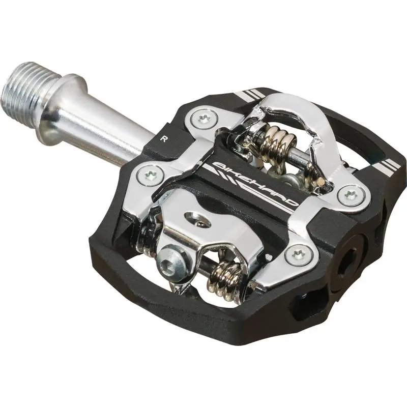 BikeHard Challenger Clipless Pedals The BikeHard Challenger pedals are confidence inspiring mountain pedals packed with technology and manufacturing excellence that are unrivalled in design. An aerospace grade 6061 aluminum body is extruded to optimal shape, then CNC machined to relieve every possibly gram possible. The rigors of XC race and enduro trail riding helped in the development of the body shape, which rather than sitting within the SPD system, wraps around and encases the mechanism. When inevitable rock or ground contact occurs, that body protects the engagement system, helping prevent system failure and alleviating stresses that would check unimpeded engagement. Bearings and spindle are similarly overbuilt for durability, with a CNC machined hollow CR-Mo steel axle set in with sealed bushings and bearings. Weighing in at 180 grams a piece, these pedals are as light as they are tough. 817616023138