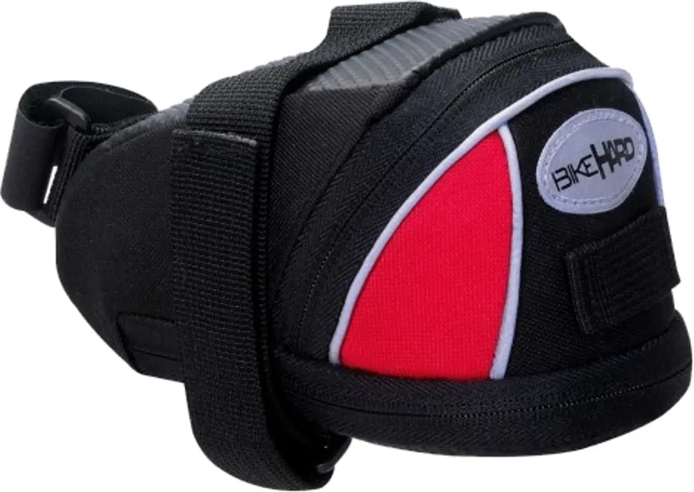 BikeHard Expandable Seat Bag Large Black/RedThe BikeHard Expandable bag has all the features you want from a premium bag. Internal Cell phone holder. Extra tough 600x600D Polyester material with PVC coating keep your contents dry and safe. Scotchlite piping for Reflective safety. The zippers are enclosed for a neat look and a water tight fit. Velcro seat rail straps are designed for easy mounting on any seat. Expandable to 40% for space. The easy opening angled mouth allows entry without spilling the contents.850228007165