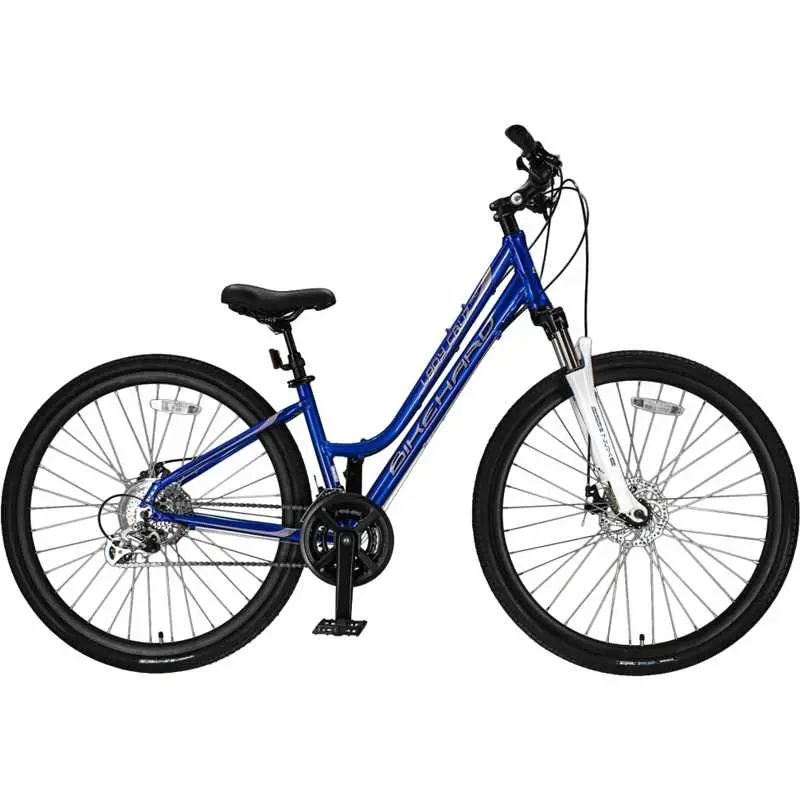 BikeHard LadyCruz Pro Disc BlueThe BikeHard LadyCruz Pro is a top level comfort oriented casual bike for the enthusiast rider. Step up from the base model LadyCruz to plusher suspension, more gears, more powerful braking, and additional quality through-out. Immediately noticeable are the disc brakes: not only do they provide more power when you need it, they feel better in the hand, and require less pull to actuate. Next would be the easy and fun shifters that make shifting the gears simple: pushing either lever with thumb gives you immediate transition from gear to gear. Lastly, the silky smooth suspension on the front fork as well as on the seatpost ensure that both big bumps and small are barely noticeable. A perfect fit for virtually any lady from 4'10" - 5’7", the LadyCruz Pro is thoughtfully designed for a comfortable, confident ride that will put a smile on your face every time you step through and start pedaling.817616023466