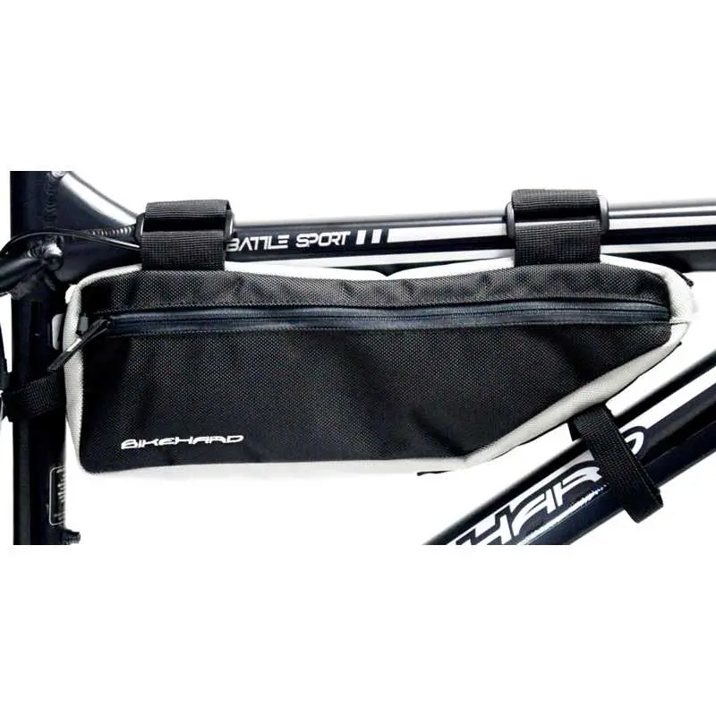 BikeHard Urbanite Frame BagBikeHard Urbanite Frame Bag fits under the Top Tube of the bike with Easy Install Velcro straps. Zippered side outside pocket and Zippered opening to main pocket for great storage. Heavy duty matrerial for long lasting use817616023169