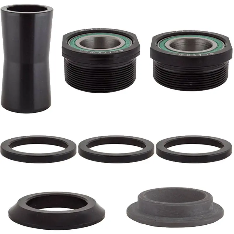 The Black-Ops Euro 19mm Bottom Bracket converts a threaded Euro style to accept MID style 19mm compatible cranks. Bearings are included.