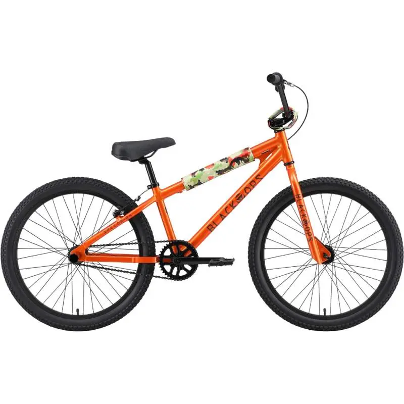 Black-Ops SpecOp-24’’ Blaze OrangeThe Black-Ops SpecOp-24’’ has a 6061-aluminum alloy frame with reinforcing gussets at critical points and steel fork for powerful durability. There are 24" alloy rims with stainless steel spokes with 24’’x2.30’’ tires. There is a single-speed drivetrain with flip-flop rear hub with a three-piece chromoly BMX cranks with 8-spline sealed bearing BB. The Black Ops SpecOp custom BMX saddle with an anti-slip surface is paired with the Black Ops SpecOp BMX handlebar. There are rear alloy v-brake with 2-finger lever. Comes with Black Ops rear pegs and a Black Ops custom 3-piece pad set. The suggested rider height is 60-68’’ / 4'10’’-5'6’’. Available in Blaze Orange.888571100059