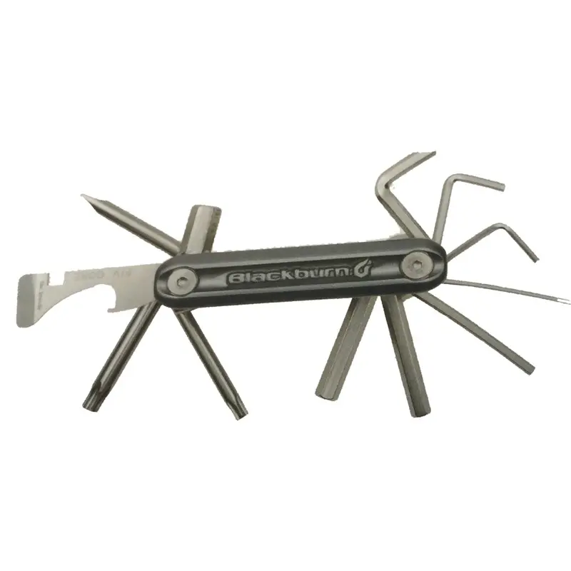 Blackburn Grid 13 Multi-Tool GreyThe Blackburn Grid 13 Multi-Tool features a compact design and nice engraved logo. Includes a flat head screwdriver, T30 and T25 Torx heads, an 8mm hollow hex head, disc pad spreader/p/v core tool, bottle opener, and 1.5, 2, 2.5, 3, 4, and 6 mm hex heads. Backed with a lifetime warranty.768686678004