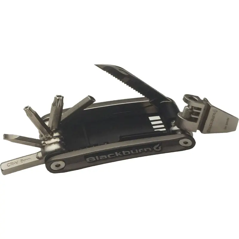 Blackburn Wayside Multi-Tool PewterThe Blackburn Wayside Multi-Tool has all the answers finally when adjustment screws are just out of reach along with 18 other functions. The removable ball-end hex/Allen keys will accommodate all your oddly placed adjustments. There are Torx keys, three spoke wrenches, a disc pad spreader, a P/V core tool, chain assembly hook, 8mm hollow hex core key extension, flat head screwdriver, 7-11 speed chain tool, and a serrated blade built in as well. There is a nicely engraved blackburn insignia.768686678035