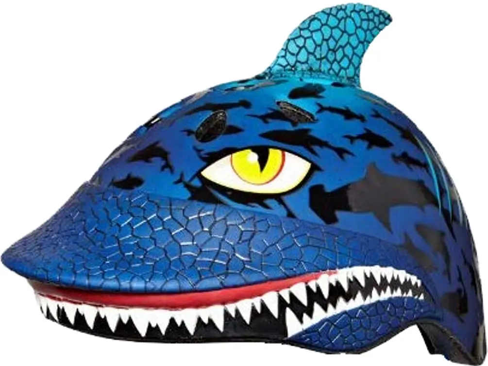 C-Preme Raskullz Child Helmet Shark Jaws BlueThe C-Preme Raskullz Child 5+ Helmets use 3D graphics and Polycarbonate Shell has an EPS liner with CPSC bike and ASTM skate certifications for safety. These helmets give great visibility and fun to your kids. These are made for kids between 5 and 8 with head circumference of 50-54cm. Available in T-Rex Awesome Green, Shark Jaws Blue, Skull Mohawk Red, Super Rainbow Unicorn Pink, and Cutie Cat Yellow.847268005541