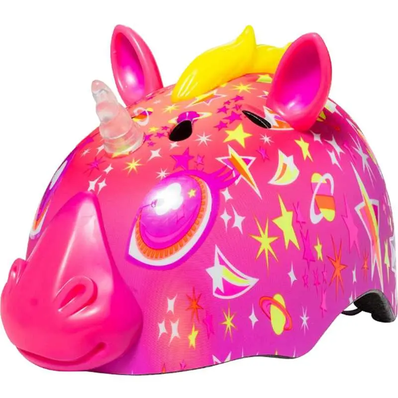 C-Preme Raskullz Super Lazer Pink LED Child HelmetC-Preme Raskullz Super Lazer Pink LED Helmets use 3D graphics and Polycarbonate Shell has an EPS liner with CPSC bike and ASTM skate certifications for safety. These helmets give great visibility and fun to your kids. These are made for kids between 5 and 8 with head circumference of 50-54cm.847268014536