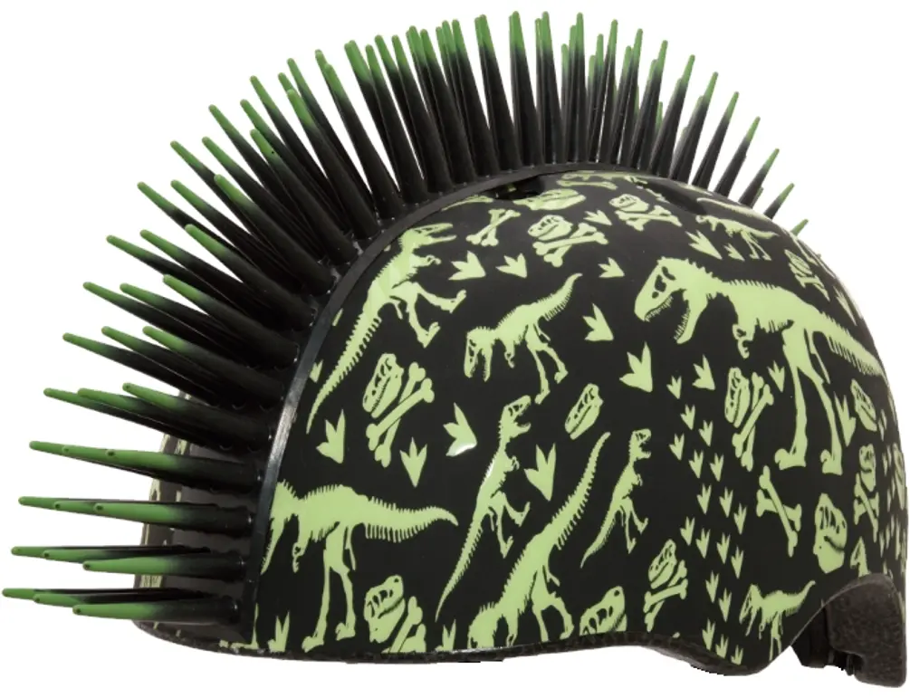 C-Preme Raskullz Toddler Helmet T-rex Bonez Mohawk Green/BlackThe C-Preme Raskullz Toddler 3+ Helmets use 3D graphics and Polycarbonate Shell has an EPS liner with CPSC bike and ASTM skate certifications for safety. These helmets give great visibility and fun to your kids. These are made for kids between 3 and 5 with head circumference of 48-52cm. Available in T-rex Bonez Mohawk Green/Black, Astro Cat Pink, Don Dragon Blue, and Googly Lady Bug Pink.847268006210