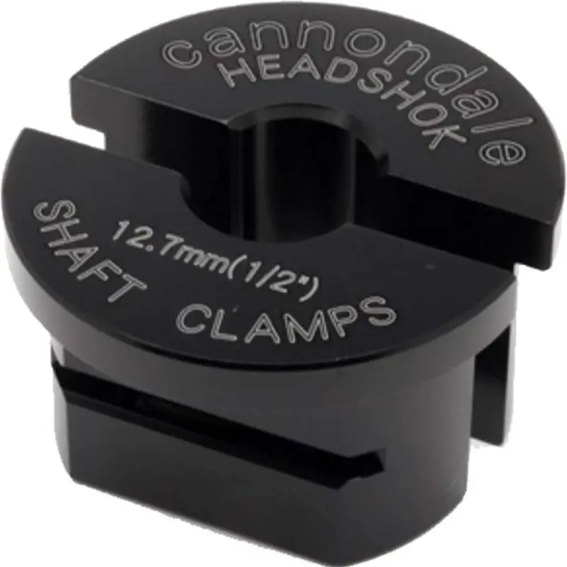 Cannondale Headshok 1/2" Shaft Clamp Cartridge ToolAn innovative Cannondale shaft clamp tool for various Lefty and Headshok damper cartridges that use a 1/2" clamp. Use this tool to securely clamp the damper shaft and remove/install air piston kits without damaging the shape or finish on the shaft. This kit includes a two-piece shaft clamp in anodized black.769753895829