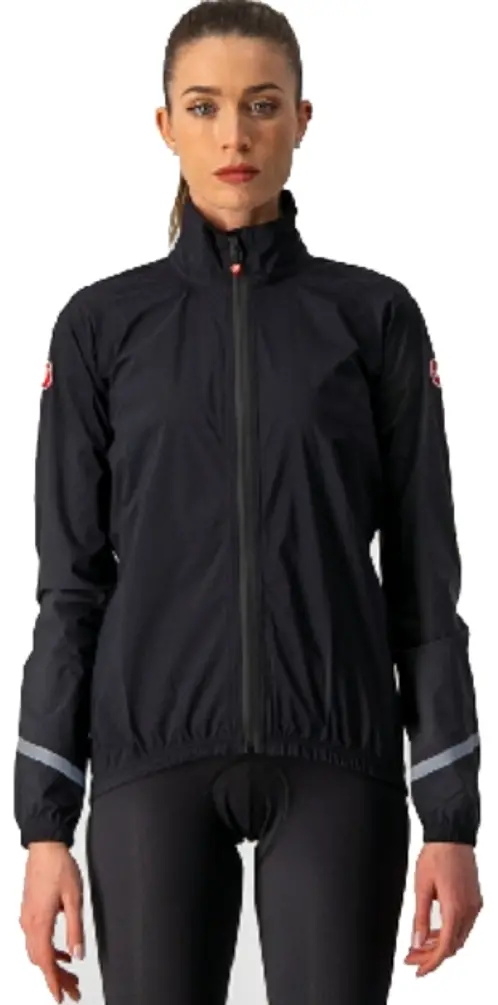 Castelli Emergency 2 Women’s Rain Jacket Large Light Black The Castelli Emergency 2 W Rain Jacket is a great choice to bring on days it might rain, only taking up half a jersey pocket on the go. The Deluge Light 2.5-layer waterproof fabric has a slight amount of stretch to fit over your layers of clothing. There is a pocket integrated into the mesh vent at the top of the back. This jacket gives you 360 degree reflectivity to increase your visibility at night. Available in Brilliant Pink, Military Green, and Light Black. 8050949398852