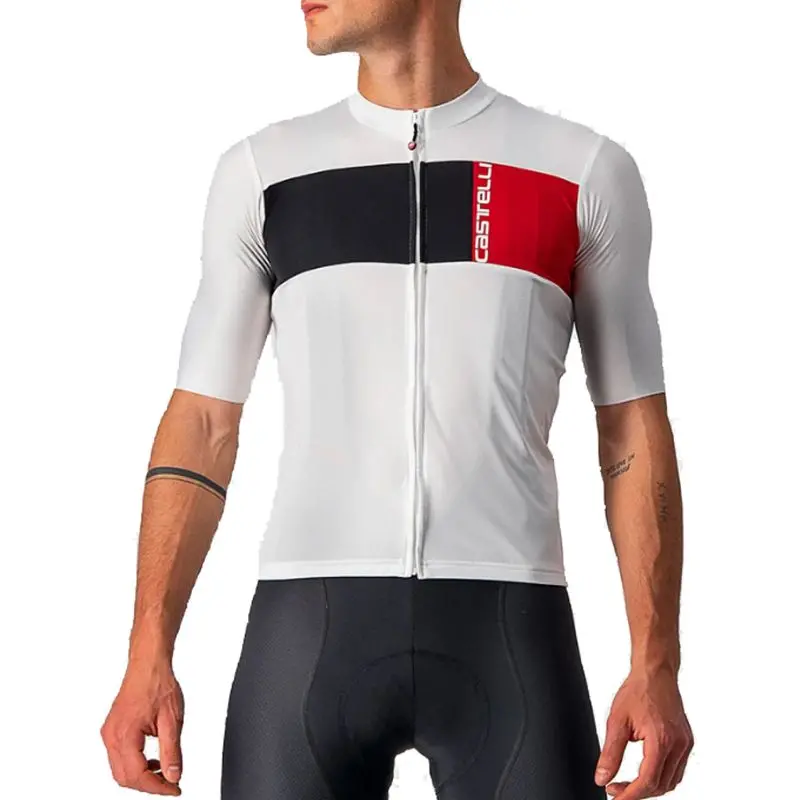 Castelli Prologo 7 Jersey Medium Ivory/Light Black-RedThe Castelli Prologo 7 Jersey is named after the opening stage of a stage race called ‘prologue’ and offers good heat regulation as well as many practical features. The fast-drying jersey is made from breathable PUNTO material. The Micro Piqué polyester knit fabric has outstanding moisture management. The VELOCITY REV2 fabric on sleeves have a snug fit. There is a full-length YKK Vision zipper for maximum ventilation when you need it. There are three-compartment rear pocket with drop pocket design for optimal access. There is an elastic silicone gripper on bottom hem and raw cut cuffs to help prevent ride up. There are reflective design elements to increase your visibility after sunset. Available in Ivory/Light Black-Red.8050949609781