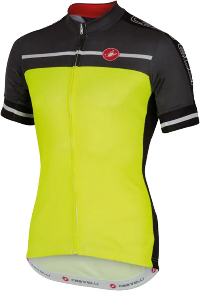 Castelli Velocissimo Jersey FZ Large Yellow Fluo The Castelli Velocissimo Jersey FZ is designed for you to take on that 7 hour trip you’ve been planning but couldn’t find a garment to hold up to the challenge. The combined efficiency of the Prosecco material and mesh side panels allow you to have a completely free range of motion while you ride. The full length YKK Zipper provides a rush of ventilation when you need it. The traditional three rear pockets accompany you with any snacks you want to bring along. The reflective heat-transfer vis strips provide night time visibility as well as allowing hot air to pass through the material freely. Available in Red, Yellow Fluo, Lime, and Surf Blue. 8055688196516