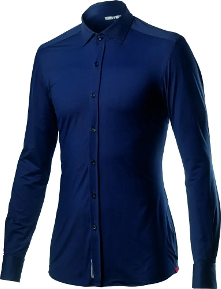 Castelli VG 5 Button Shirt XXX-Large Dark Infinity Blue The Castelli VG 5 Button Shirt is a collaborate effort between Castelli and Xacus to make you a functional, and comfortable shirt. The Stretch Nylon/Lycra is unrestricting and cool. This Slim Fitting Shirt has matte buttons to contrast the stitching on the top button. There is a discreet TPR Logo and Woven VG Atelier Label. Available in Dark Infinity Blue. 8050949078921