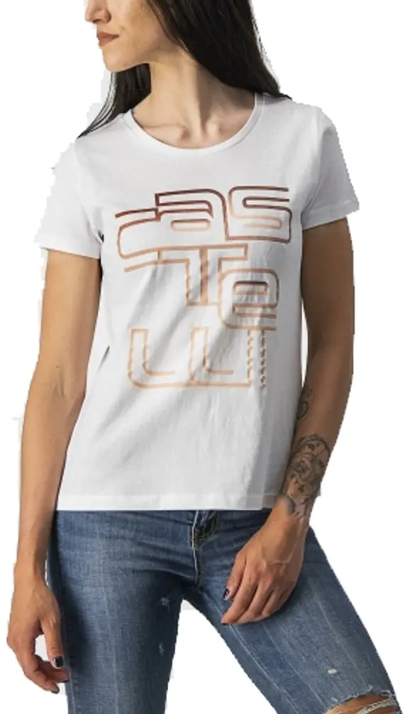 Castelli Women’s Bellagio Tee Medium White/Blush The Castelli Women’s Bellagio Tee is a super comfy T-shirt for riding or lounging. This cotton shirt is soft to the touch and the Screen Printed Graphic looks great. Available in White/Blush, Burnt Orange, and Savile Blue/Sky Light. 8050949617007