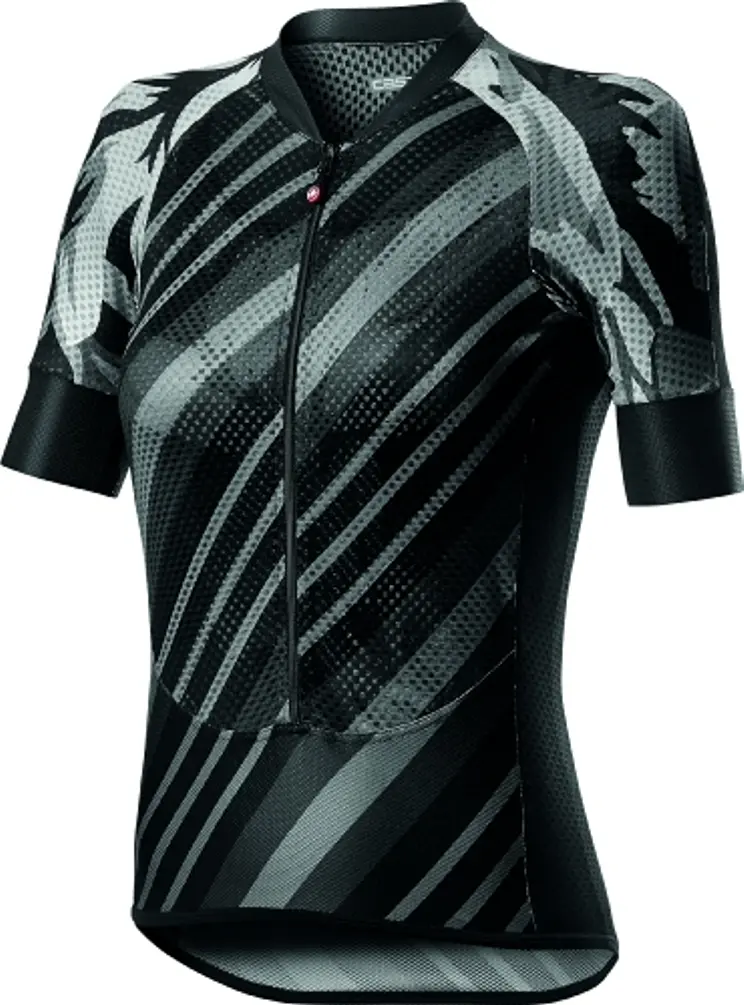 Castelli Women’s Climber’s Jersey Medium Light BlackThe Castelli Women’s Climber’s Jersey is a great jersey with support, moisture wicking, and a front liner to prevent excessive transparency. The StradaPro 3D fabric on back provides support to the 3 rear pockets and UPF 16 protection. The 75g/m2 Flusso 3D fabric on front and shoulders keeps the jersey light and dry. The 3/4 length zipper allows easy on and off. The arms have AirMesh Bands for extra ventilation. Available in Red, Dark Steel Blue, Light Black, and Deep Purple.500192198057