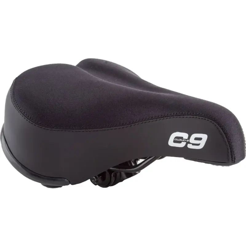 Cloud-9 Ladies’s Comfort Lycra Saddle BlackThe Cloud-9 Ladies’s Comfort Soft Lycra Saddle is engineered with Cloud 9's dual-density gel padding that's soft on top and firmer below for support. You'll also love the pressure-eliminating cutout on top and vibration-canceling springs in the base. The Lycra cover is soft and comfortable. The steel rails are built for many years of riding. The dimensions are 10 x 8’’. Available in Black.072774493586