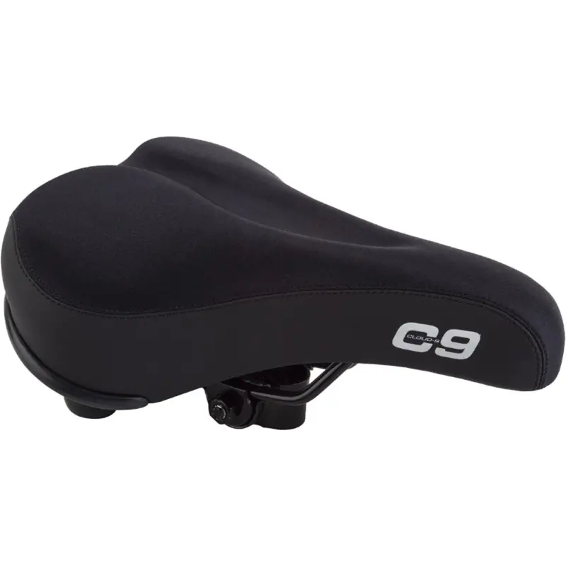 Cloud-9 Men’s Comfort Lycra Saddle BlackThe Cloud-9 Men’s Comfort Lycra Saddle is crafted with Select Foam, the softest foam available. We have fused a gel-foam pad on top of the traditional Multi-Stage foam to create a feel that is soft yet supportive. The Elastomer Springs absorb small imperfections in the road and the Vented Channel allows air to circulate keeping you cool and comfortable. The dimensions are 11.25x 9 x 7.6’’. Available in Black.072774493562