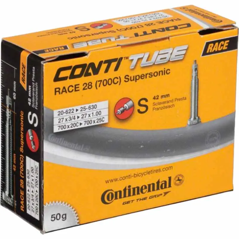 The Continental Supersonic tube is as light as it gets. This 700x18/25c tube is a race day only tube which has a 60mm valve length. Only 50gms.