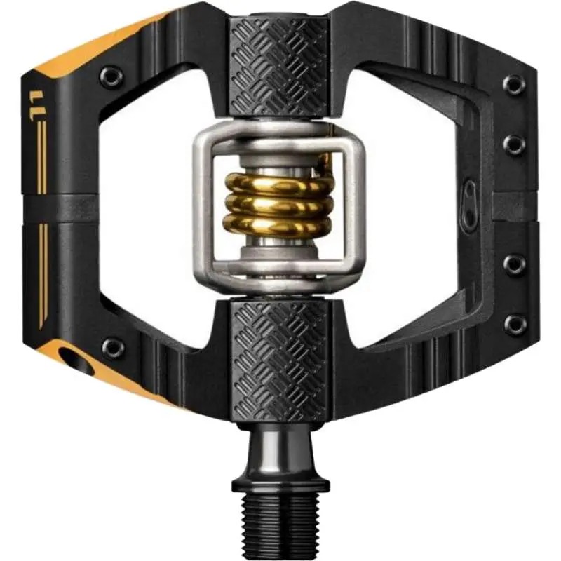 Crank Brothers Mallet E 11 Pedals Black/GoldThe Crank Brothers Mallet Enduro 11 Pedals are the ultimate performance Enduro Racing pedals. There are titanium wings and a dual chamfered edges to keep them light, yet strong. Forged 435 Chromoly Steel Spindles will hold up to heavy abuse. The body material is 6061-T6 Aluminum, the Wing made from 6al/4v Titanium. The spring is made from 300 series stainless steel. The release angle is between 15 and 20 degrees. There is no weight restriction on these pedals. There are 52mm of Q factor. The inner bearing type is Igus LL-glide bearings. The Outer bearing type has Enduro Cartridge Bearings. There are premium brass cleats with shims included. Weighs only 385 grams. There are 6 adjustable pins on each side of each pedal. The warranty lasts for 5 years!641300160935