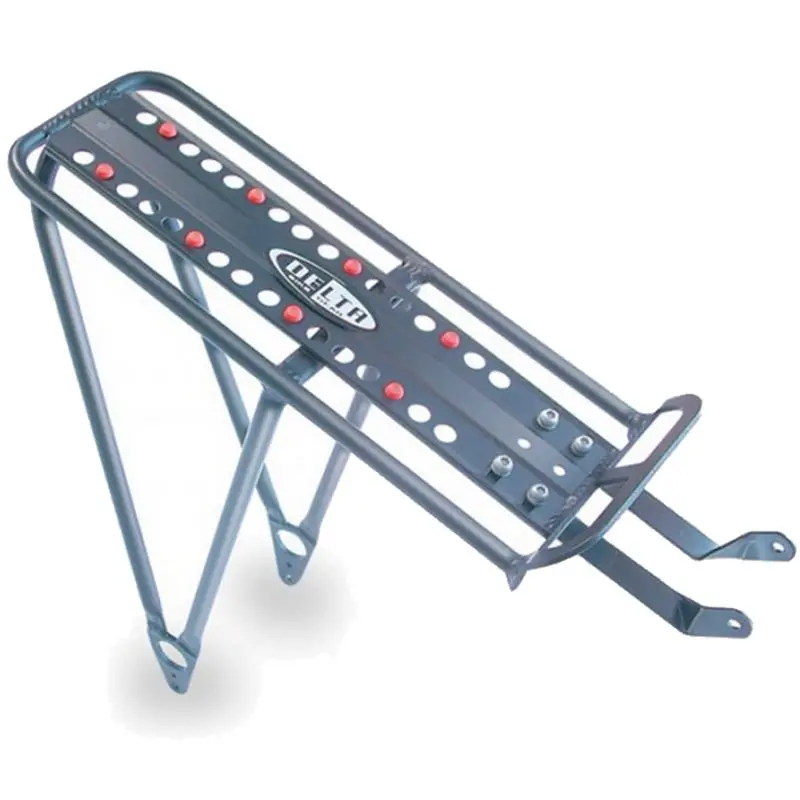 Delta SuperSherpa Rear MegaRackThe Delta MegaRack SuperSherpa can accommodate most adult bikes and some 24’’ youth bikes with rim brakes. The premium welded aluminum tube construction includes a reflector bracket and can hold up to 60 pounds. With dimensions of 13’’x45’’x13.5’’ and weighing only 680 grams, you are guaranteed enough space for all of your overnight gear to go on the best adventure yet! Not compatible with disc brakes. The inner clamp diameter is ¾’’. For higher end bikes without brazeons (threaded holes) you will need the brake bridge/center mount fit kit (MR1020). This rack is compatible with bikes that have more than 17’’ but less than 23’’ on the seat tube, from the top of the bottom bracket shell to the bottom of where the top tube meets the seat tube. The rack is black.799403208303