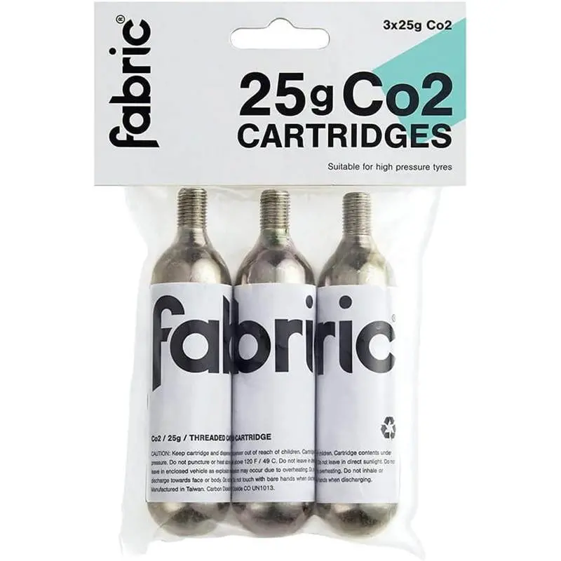 The Fabric 25g Threaded CO2 Refills (3 Pack) fits any standard CO2 pump that accepts threaded cartridge. Fill up effortlessly anywhere. Can only be shipped by ground.