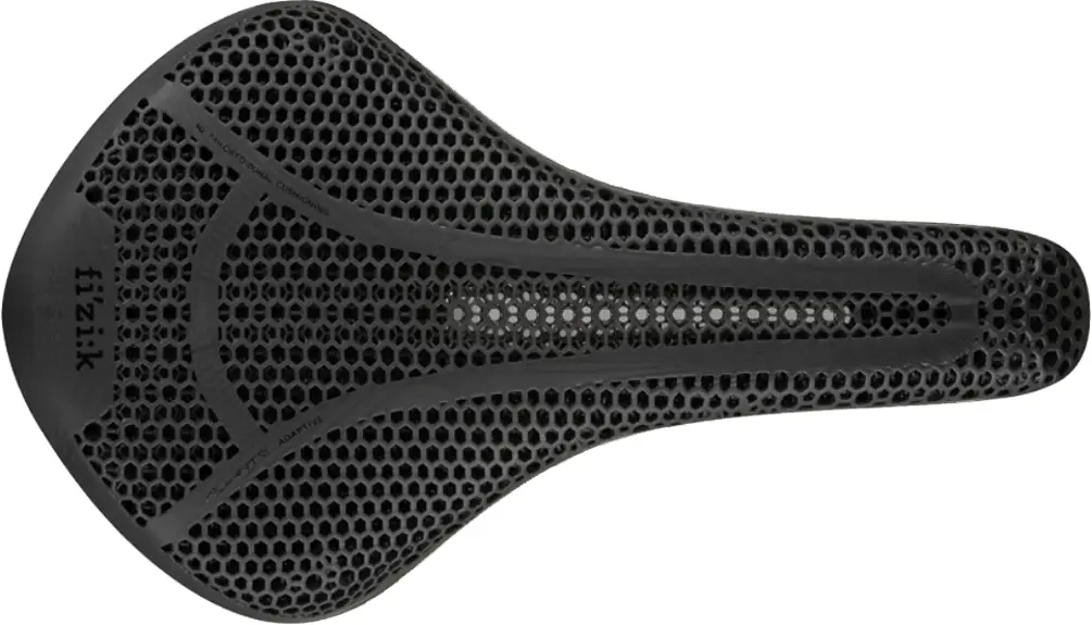 Fizik Tempo Aliante R1 Adaptive Saddle 145mm BlackThe Fizik Tempo Aliante R1 Adaptive Saddle prioritizes support, pressure relief, and stability thanks to its waved profile and innovative Adaptive 3D-printed padding. Each of these key functional zones is engineered for a distinctive cushioning and mechanical response, joined together progressively and seamlessly in the same padding. This is the R1 version using combination of a ride-compliant, carbon-reinforced nylon shell and a highly stiff 7x9mm carbon rail. The Aliante profile uses a slightly wider platform to support the ischial bones, it improves stability and weight distribution for all-day rides. With a focus on comfort, the newly redesigned Aliante has a flatter surface to allow for more evenly spread pressure and a balanced feel, especially useful on extended endurance rides. The Dimensions are 277mm x 155mm and weighs only 201g. Available in 155mm version.F2300025
