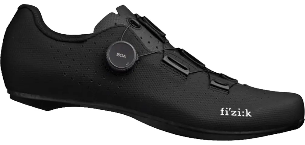 Fizik Tempo Decos Carbon Wide Shoe 45 BlackThe Fizik Tempo Decos Carbon Wide Shoe uses a minimalist design with sleek uppers utilizing a resilient polyurethane-laminated material combined over a comfortable mesh, resulting in reduced yield and providing long lasting foot support. The fit is quickly fine-tuned with a single bi-directional Li2 BOA dial. The R2 outsole’s engineered carbon fiber layup saves weight and delivers increased stiffness. With a stiffness index rating of 10, this outsole the most responsive in the Fizik range. A wide vent inlet and deep internal channeling provide cooling airflow, aiding in temperature regulation. The cleat positioning is set slightly further back compared to traditional settings to optimize pedaling efficiency and reduce knee compression. This is well-suited for very aggressive, forward aero positions. These super light shoes weigh about 288g each. This is the Wide version. Available in Black/Black and White/White.F3023450