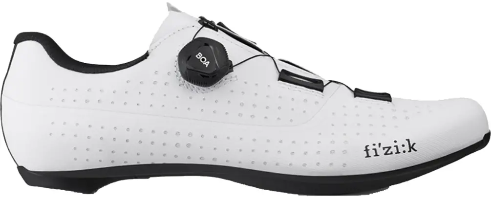 Fizik Tempo Overcurve R4 Wide Shoe 45.5 White/BlackThe Fizik Tempo R4 Overcurve Wide Shoe is a Well-Ventilated, Micro-Adjustable and Form-Fitting shoe. Based on the classic Overcurve design, the R4 is designed for easy transitions into aggressive riding while maintaining balance. The outsole is moderately stiff, due to the improved design including infused carbon fiber without sacrificing comfort. Additionally, the single Boa IP1-B dial allows for easy on and off as well as quick and secure closure. Available in Black.F2002455