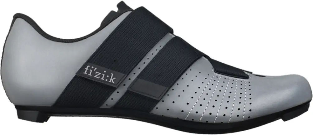Fizik Tempo Powerstrap R5 Shoe 47 Reflective Grey/Black Fizik Tempo Powerstrap R5 Shoe is a versatile road shoe made for your most enjoyable rides. Designed with a foot-wrapping Velcro closure for an enveloping fit, the two straps wrap around the shoe enabling comfort and containment. The R5 outsole with carbon reinforced nylon will provide comfort but will not compromise efficiency and is engineered to ride on all roads from smooth tarmacs to the toughest pavements. Available in Black/Black, White/Black,and Coral/Black. F2236470