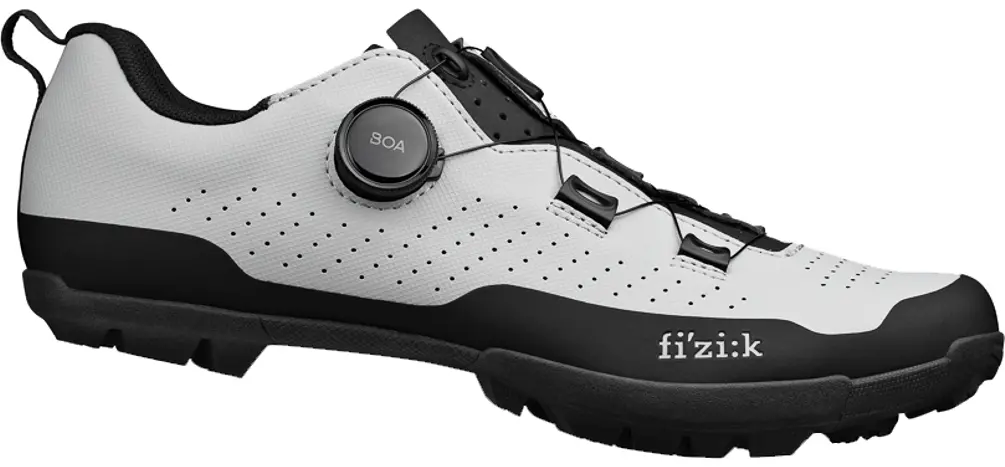 Fizik Terra Atlas Shoe 43.5 Grey/Black The Fizik Terra Atlas Shoe is a true all-terrain, all-road cycling shoe designed with a more generous fit for endless comfort, from gravel tracks to MTB trails, all-day adventures to extended bike packing escapes, for riders who know no borders. This shoe is engineered to efficiently spin pedals off-road, equally capable of handling fast and fun down country laps, epic all-mountain rides, long-distance backcountry adventures and drop bar gravel grinding. These shoes are well-ventilated without sacrificing protection thanks to a TPU overlay that reinforces the toecap. Easily adjusted with a practical, single-BOA closure to dial in your fit and go wherever the day may lead. Fizik redesigned the X5 outsole for better grip and more traction. Equipped with generous studs and a rubber coating that covers the entire surface, including the mid-foot, the X5 outsole provides sure footing when steep, rough tracks require you to hike your bike. There is a hidden nylon foot plate is there to deliver balanced stiffness for pedaling efficiency. SPD Compatible. Available in Black/Black, Grey/Black, Pink Grape, and Army. 5940699001528