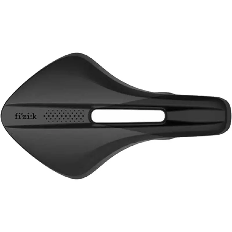 Fizik Transiro Aeris SD R3 SaddleThe Fizik Transiro Aeris SD R3 Saddle is a split-nose innovative triathlon and time-trial cycling saddle engineered to maximize stability and support for explosive power during shorter rides and races. This saddle has a pressure relief cutout, which progressively transitions into a channeled nose, to increase comfort. At the same time, the properly dimensioned nose provides the right level of support and stability to allow riders to produce maximum power while in forward, aerodynamic position. The saddle padding consists of our type-1 formulation thicker on the nose, where triathletes and time-trialists spend most of their time, and slimmer on the ischial bones. The 7x7mm Kium rails uses reinforced carbon fiber to be strong and light. The Aeris comes with an optional link to integrate a water bottle cage at an angle that is out of the way. The dimensions are Width: 135mm, Length: 242mm, and Height: 51mm (at 75mm from nose). Weighs only 210g. Available in Black.F2200036