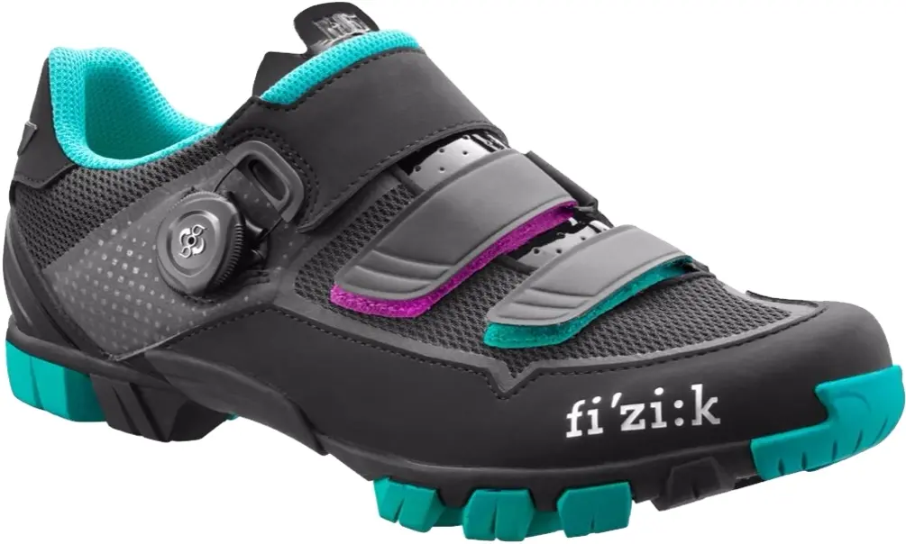 Fizik Women’s M6B Donna BOA Shoe 37 Black/Anthracite/Emerald The Fizik Women’s M6B Donna BOA Shoe brings together the concepts you want in a trail exploring shoe. The rugged Microtex with Nylon Mesh allows air exchange to help ventilate your feet as you push your hardest through the unknown. The rubber outsole has a carbon-reinforced nylon midsole to maximize your pedal power transfer. The wonderfully easy Boa IP1 closure system allows you to tighten your shoes effortlessly every time. The welded Microtex Straps keep the shoe simple while adding a bit of colorful flair. Available in Black/Anthracite/Emerald. F1706441