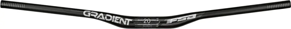 FSA Gradient Carbon 35 Riser Handlebar 20mm Black The FSA Gradient Carbon Riser Handlebar is engineered to be lightweight yet reinforced where you need it to be. These bars are ambitious enough to take on XC riding as well as Freeriding when you feel like it. The clamping areas are textured and reinforced. This version of the Gradient has a 35mm clamp, 8° back sweep, 5° up sweep, and option of 20mm or 30mm rise. 800mm width with marks to make shortening it easier. Weighs about 220g. Available in Black. 840031064318