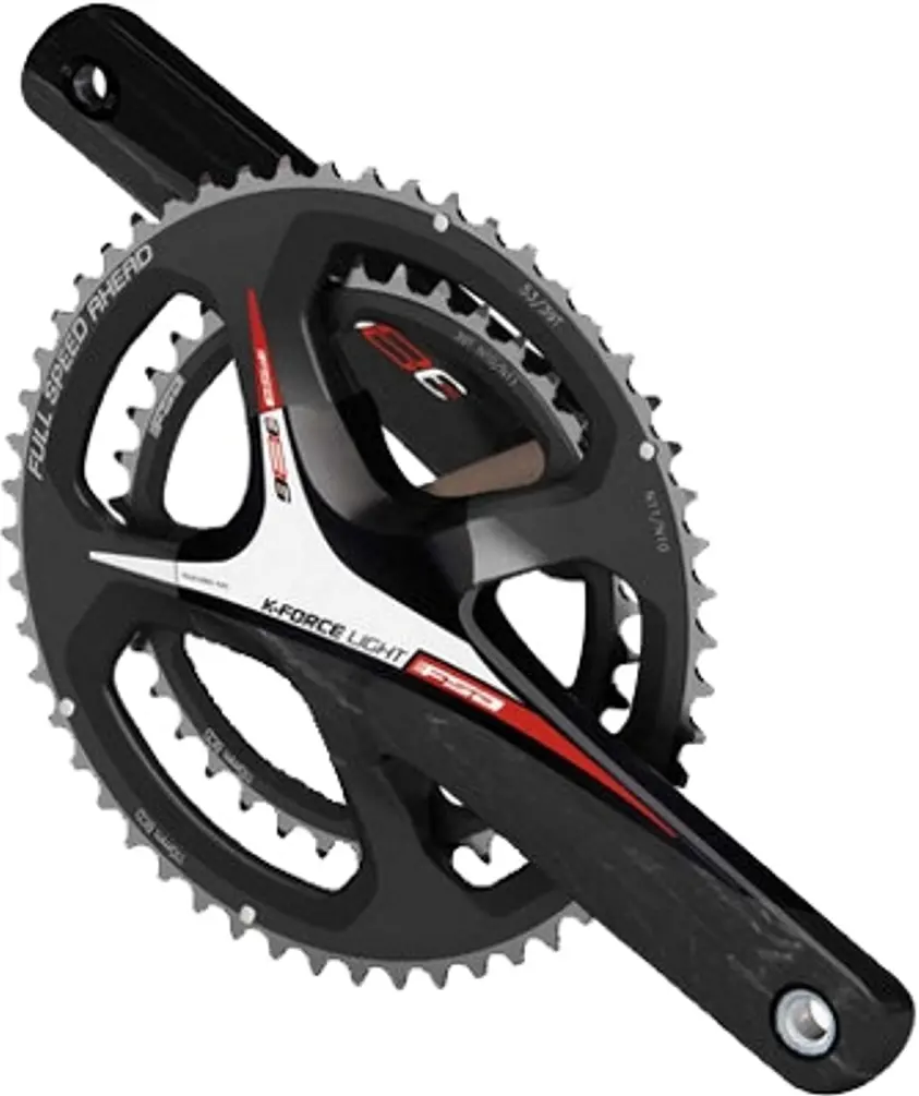 FSA K-Force Light Carbon Crankset BB386-EVO Red 175mm 53x39FSA’s K-Force Light BB386 Crankset sheds the traditional design in favor of a new 5 arm, asymmetric design. The new design is stiffer in the highest stress point of the down stroke; you will definitely notice improved shifting and response with this upgraded system. The hollow carbon arms feature a unidirectional finish and hidden bolts and spindle for an improved look and aerodynamics. The K-Force Light weighs in at 584 grams with a BB386 spindle and includes 7075 aluminum chainrings with alloy T-30 Torx chainring bolts. It is also compatible with the new Shimano 11 speed chains. Arms are available in 170, 172.5 and 175mm lengths and in red or black graphics.400310063441
