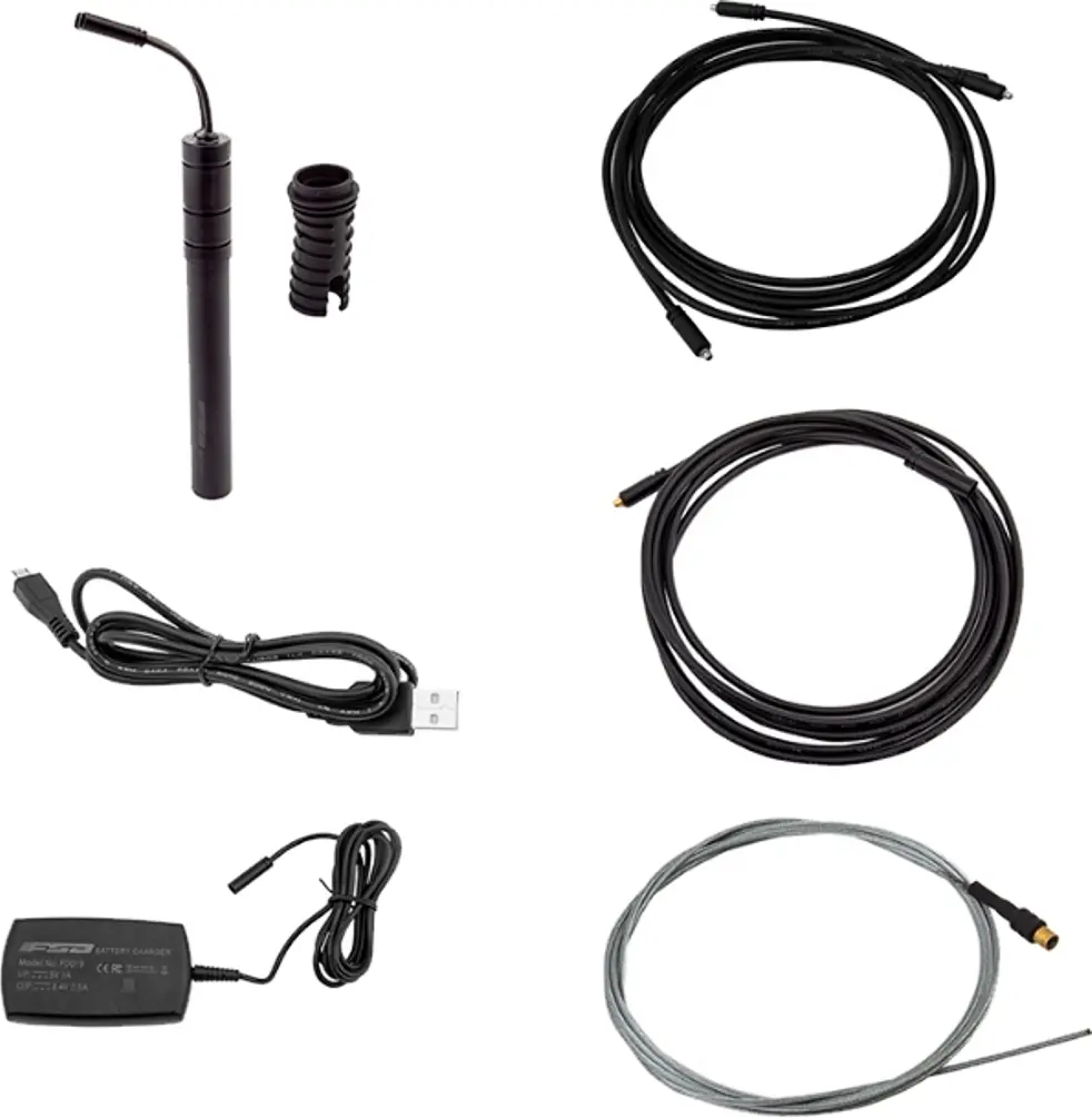 FSA K-Force WE Battery, Charger, and Cable Set 700mm and 1100mm The FSA K-Force WE Battery, Charger, and Cable Set has what you need to get started, minus shifters, a drivetrain, and derailleurs. Get the best set to match your individual bike setup. Shifters, Drivetrain, and Derailleurs sold separately. Available in 650mm and 1050mm, 700mm and 1100mm, and 750mm and 1150mm lengths. 840031052971