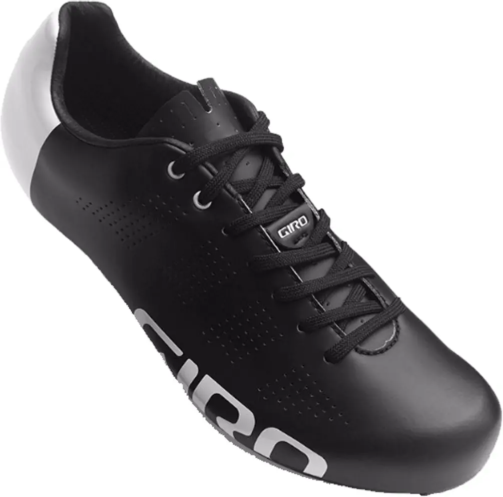 Giro Empire ACC Shoes 49 Black/WhiteThe Giro Empire ACC Shoes are here to push the limits of comfort, performance, and style with six rad colors. The classic laced look is paired with the new Premium Evofiber Microfiber Upper to provide air exchange, and perfect conformity to your unique foot shapes. The reengineered Easton EA90 ACC Carbon Sole has a new and improved 6.5mm stack height for maximum pedal energy transfer. There are replaceable Heel Pads and Steel Hardware to maximize the longevity. The Adjustable Supernatural Footbed is also provided to align with just the right amount of support for your arches and ankles. Available in Black/White, White/Black, Reflective Silver, and Blue Steel/Matte Black.768686019654