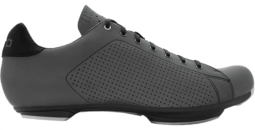 Giro Republic LX R Shoe 40 Dark Shadow Reflective The Giro Republic LX R Shoe (310 grams, size 42) is a versatile cycling shoe that remains stylish and comfortable even after the ride ends. Its new nylon and rubber outsole beautifully compliments the high-quality leather upper to provide terrific traction for stable footing and a luxurious fit. Plus, the other handy features (like the 2-bolt cleat mount and the mid-foot scuff guard) further distinguish this shoe as an integral addition to your cycling/everyday apparel. The Republic LX R Shoe comes in sizes 37-48 (whole sizes only) and is available in Dark Shadow Reflective and Tobacco Leather. 768686091346