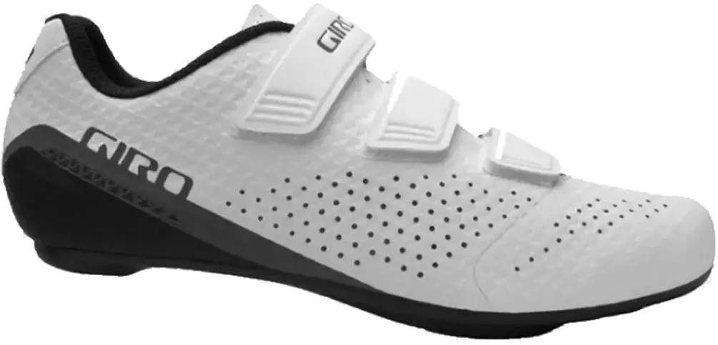 Giro Stylus Shoe 49 WhiteThe Giro Stylus Shoe features our premium Synchwire single-layer upper that conforms to the foot, and provides phenomenal structural support and ventilation. Three compression-shaped hook-and-loop straps provide tried-and-true tightening to create a comfortable, supportive fit. Our injection-shaped nylon and glass fiber outsole, with over-shaped heel and toe pads plus a universal 3/2 cleat bolt pattern, gives you the power and versatility you need to get the most out of every ride. Weighs only 272g size 42. Universal Cleat Mount 2 or 3 bolt system compatible. Available in White, Black, and Bright Red.768686352720
