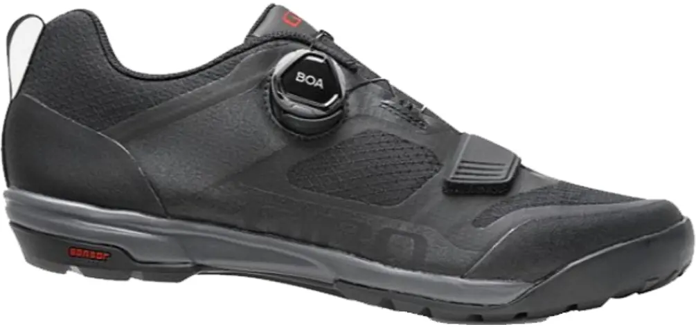 Giro Ventana Shoe 45 Black/Dark ShadowThe Giro Ventana Shoe is engineered to take on all the challenges of mountain biking with comfort and style. The one piece synchwire upper design has PU bonded mesh for durability and ventilation. The heel and toe sections are reinforced with rubber to help further increase ruggedness. The Boa L6 Dial has 1mm adjustments and macro release so you can get the best fit when you ride. There is a Velcro Forefoot Strap and Injected EVA cushioning midsole. The hardware is all stainless steel and the Shaped EVA Footbed has medium arch support. Available in Black/Dark Shadow and Black/Olive.768686261770