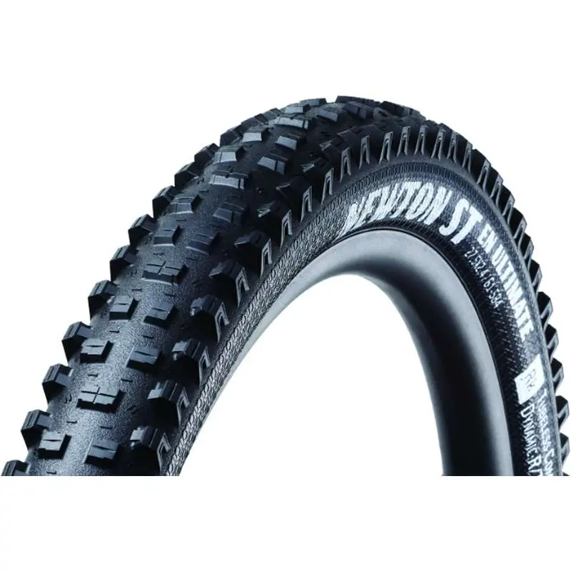 Goodyear Newton-ST En Ultimate 27.5x2.4 Tire Fold Tubeless ReadyThe Goodyear Newton-ST En Ultimate Tire 27.5x2.4 is here to meet all of your aggressive mountain biking and even downhill needs. The tread design features ramped center knobs to reduce rolling resistance, while tall, arch-supported side knobs provide ample braking and cornering grip. Taller, meatier, and more aggressive than the Newton, the Newton ST ups the ante when front grip and loose terrain traction is a priority. Tubeless Ready Compatible. Size 27.5x2.4. Available in Black.810432030601