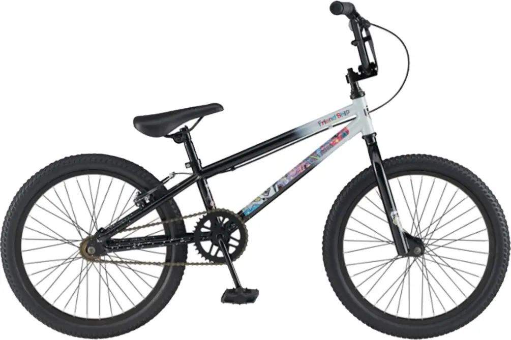 GT Friend Ship 20’’ Black/White The GT Friend Ship 20’’ has everything your kid needs to explore the outdoors with steel hardware and colorful graphics. Let them explore their creative side with the dry erase number plate. The front brake lever is adjustable to fit growing hands as they experience the adventure awaiting. Available in White/Purple and Black/White. 038675233454