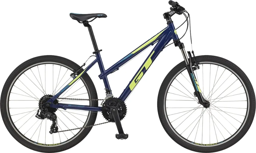 GT Laguna 26’’ Medium Dark BlueThe GT Laguna 26’’ knows that real women are made of guts and determination, and exude unmatched grace on a bike. Sometimes the hills on your commute just aren’t enough of a challenge, and that’s when you hear the trails calling. The double walled rims are strong and the 21 speed drivetrain gives you plenty of options when the conquering hills on your way. The Shimano components give you smooth shifting and braking. Whether you’re looking to explore beyond the city or get a great introduction to mountain biking, the GT Laguna bike is the perfect answer to all your exploration needs.038675206854