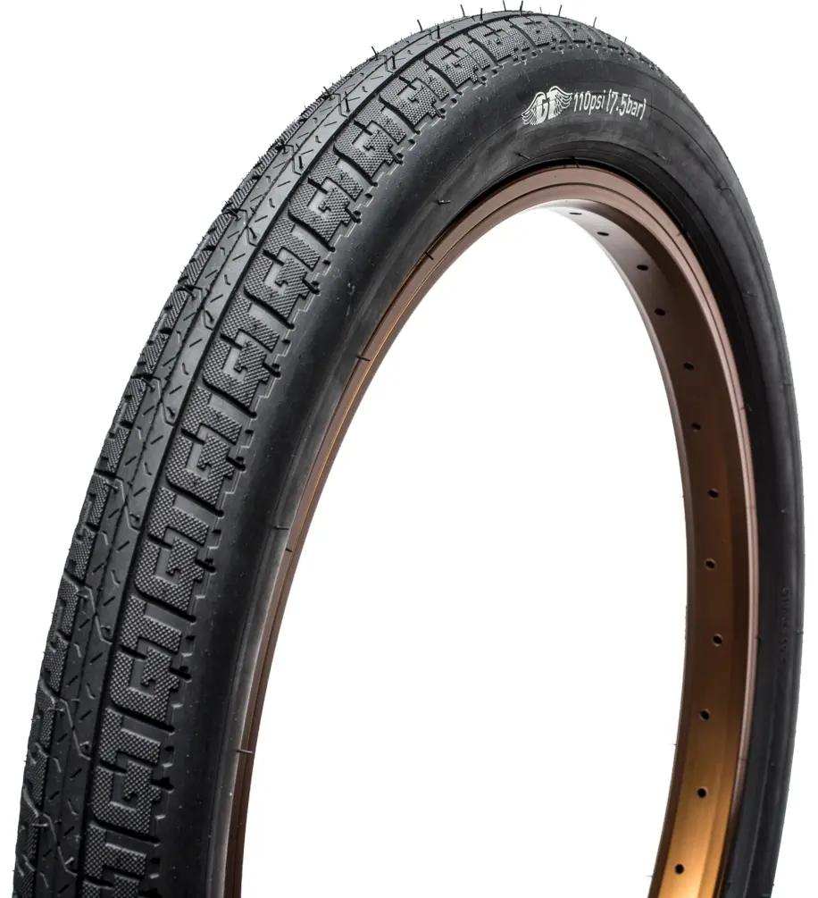 GT LP-5 20'' 20x2.2 Tire BlackThe GT LP-5 20’’ Tire uses a classic GT Low Profile le tire with the rigidity of the classic GT Tread Block. In addition there are Quick Release Sidewalls are engineered to reduce drag while grinding. The tread is non directional and the center is smooth for fast rolling. Available in width 2.2’’ and 2.35’’. Available in Black and Bourbon.038675096196