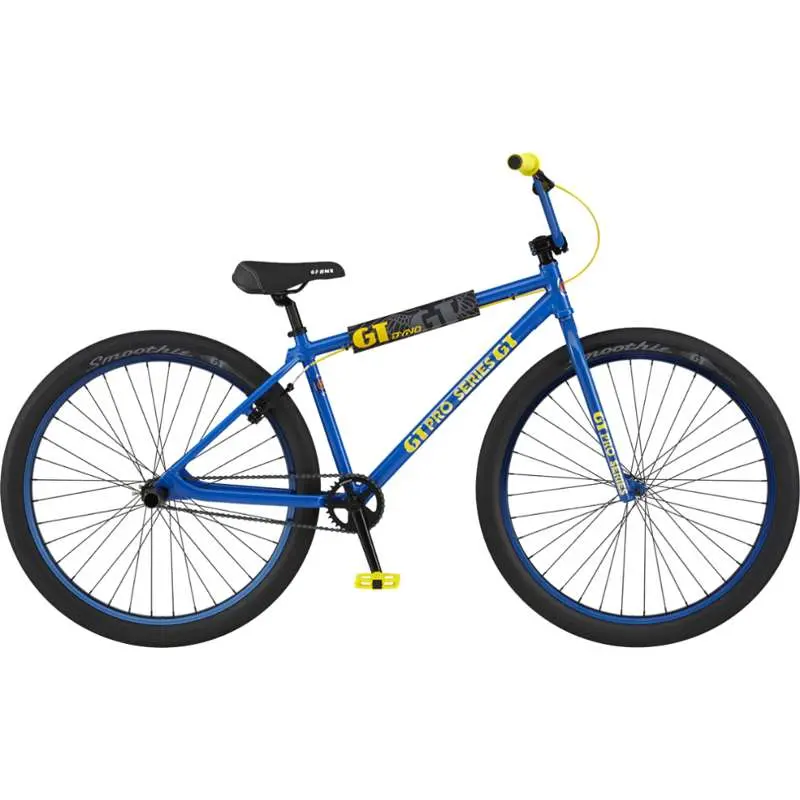 GT Pro Series 29er LTD BlueThe GT Pro Series 29er calls back to the early days of freestyle BMX with a familiar frame design, a pad set, and throw back, limited edition coloring. The 29" wheels ensure a smooth ride and allow the bike to be ridden on and off road. An integrated headset design allows for a clean look and sealed bearings that need less maintenance. Feel free to get wild as the 3-piece chromoly cranks and sealed bottom bracket bearings, chromoly frame, and chromoly handlebars all contribute to amazing strength and durability.038675209718